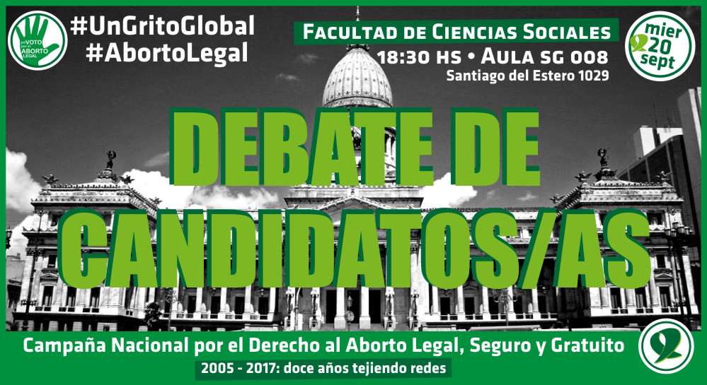 Este 20 de septiembre en la Facultad de Ciencias Sociales lxs candidatxs a diputadxs de la Ciudad de Buenos Aires debaten el derecho al aborto y el Proyecto de Ley de Interrupción Voluntaria del Embarazo de la Campaña Nacional por el Derecho al Aborto Legal, Seguro y Gratuito.