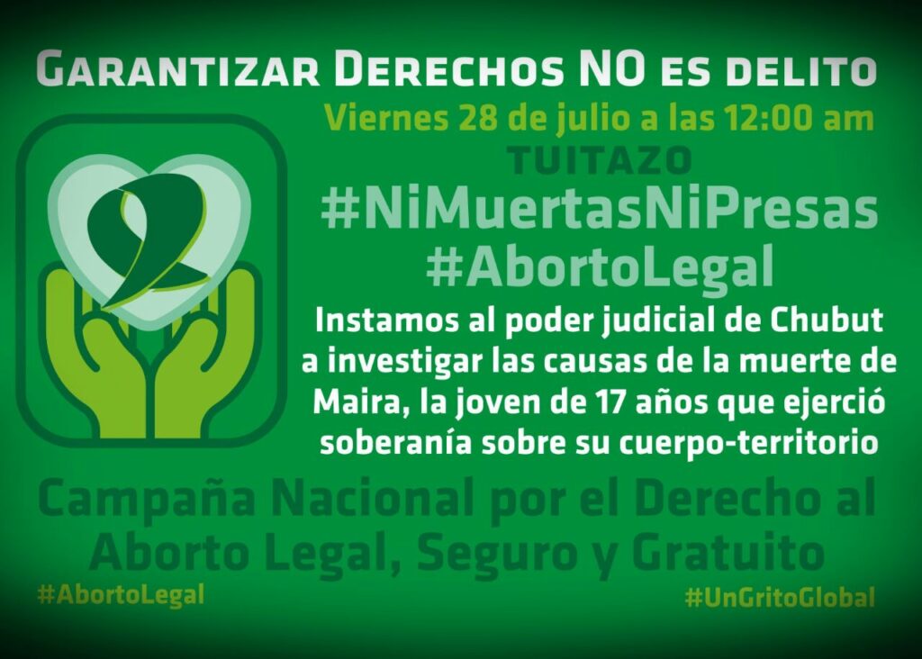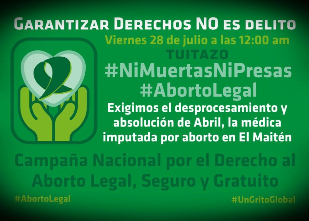 En diciembre de 2015, Maira*, una joven de 17 años de El Maitén, Chubut, se acercó al centro de salud de la ciudad a solicitar la interrupción legal de su embarazo. Allí, se encontró con Abril*, otra joven pero médica residente, quien la acompañó y garantizó el acceso a la información y su derecho a la salud. Maira conoció a una médica que la escuchó y dio lugar a su decisión y derecho a la autonomía y brindó las condiciones materiales para que acceda a un aborto seguro con medicamentos dentro de la institución, algo que debería ser política de Estado en todo el territorio nacional. Pero a pesar de esto, y por causas cuya investigación aún exigimos, Maira vuelve a internarse días después y fallece en otro hospital. A pesar de esto, Abril es la única persona criminalizada y su delito parece ser haber garantizado un derecho.