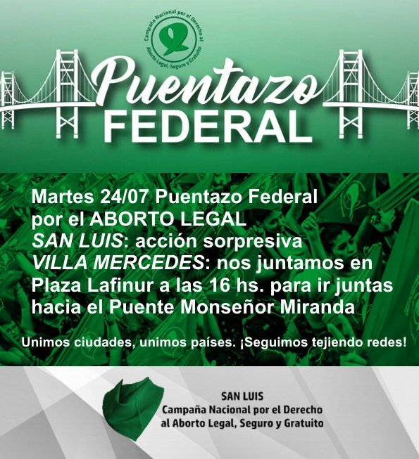 Mañana unimos barrios, unimos ciudades, unimos países con un #Puentazo Federal. Realizaremos intervenciones en puentes de todo el país exigiendo un dictamen sin modificaciones!!